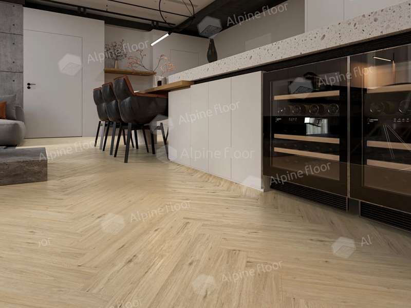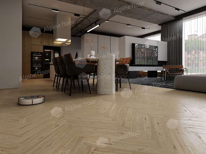 Ламинат Alpine Floor Herringbone 8 Дуб Лион LF102-1: описание, фото, характеристики и аксессуары.