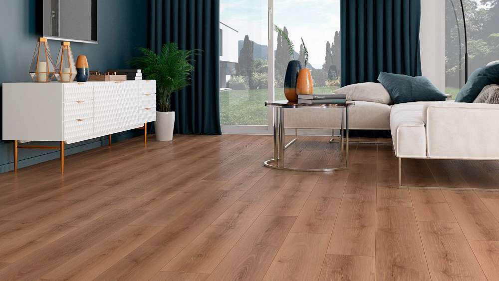 Это полностью готовое покрытие. Оно не требует финишной отделки – верхний слой с "Однополосный" рисунком прекрасно вписывается в любое оформление комнаты и хорошо смотрится со всеми настенными и потолочными материалами. Толщина доски составляет 10мм, что позволяет сделать пол прочным, устойчивым к прогибу. Ламинированная панель выдерживает большой вес мебели, на ней не остается следов от ножек и царапин. Материал хорошо держит тепло внутри помещения, не пропускает внутрь холод.