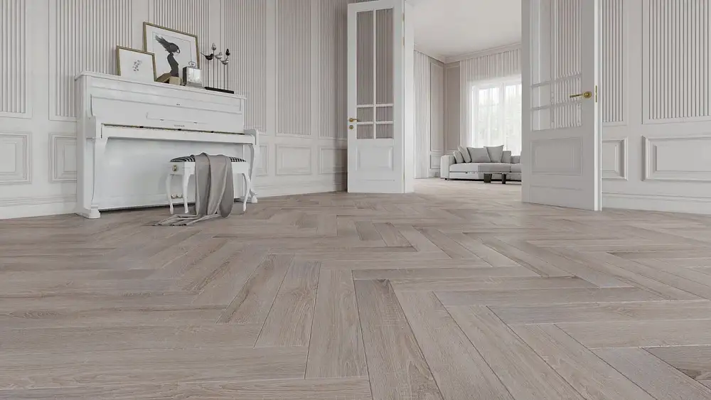 Это полностью готовое покрытие. Оно не требует финишной отделки – верхний слой с "Елочкой" рисунком прекрасно вписывается в любое оформление комнаты и хорошо смотрится со всеми настенными и потолочными материалами. Толщина доски составляет 12мм, что позволяет сделать пол прочным, устойчивым к прогибу. Ламинированная панель выдерживает большой вес мебели, на ней не остается следов от ножек и царапин. Материал хорошо держит тепло внутри помещения, не пропускает внутрь холод.