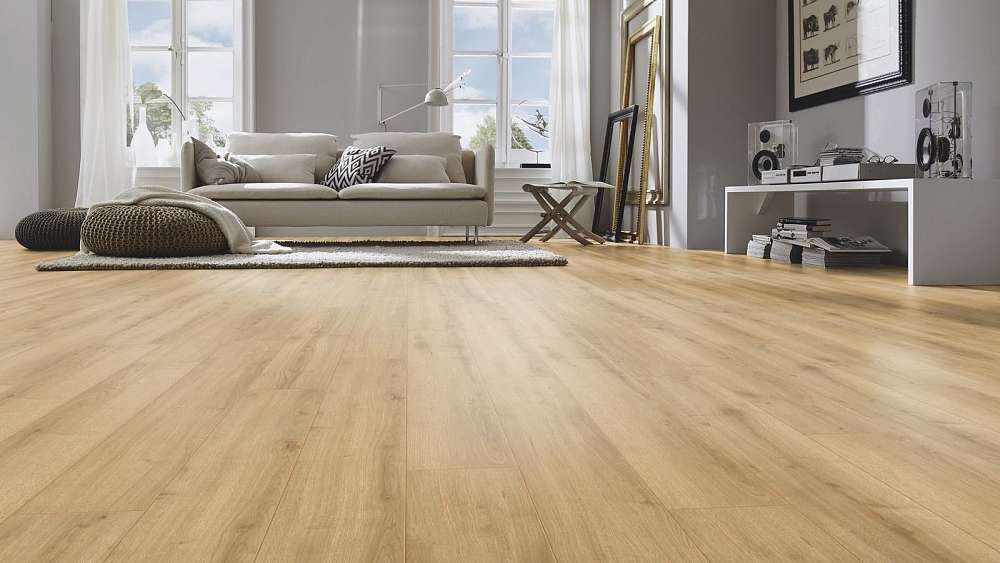 Это полностью готовое покрытие. Оно не требует финишной отделки – верхний слой с "Однополосный" рисунком прекрасно вписывается в любое оформление комнаты и хорошо смотрится со всеми настенными и потолочными материалами. Толщина доски составляет 10мм, что позволяет сделать пол прочным, устойчивым к прогибу. Ламинированная панель выдерживает большой вес мебели, на ней не остается следов от ножек и царапин. Материал хорошо держит тепло внутри помещения, не пропускает внутрь холод.