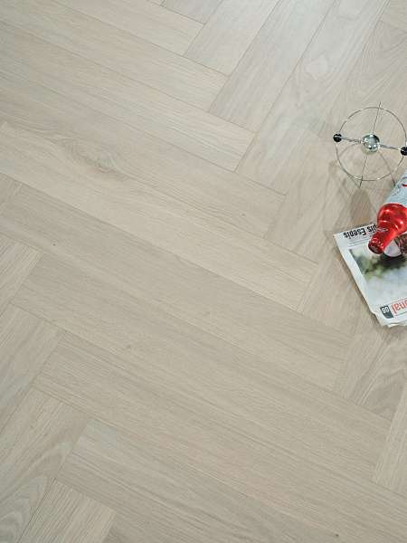 Это полностью готовое покрытие. Оно не требует финишной отделки – верхний слой с "Елочкой" рисунком прекрасно вписывается в любое оформление комнаты и хорошо смотрится со всеми настенными и потолочными материалами. Толщина доски составляет 12мм, что позволяет сделать пол прочным, устойчивым к прогибу. Ламинированная панель выдерживает большой вес мебели, на ней не остается следов от ножек и царапин. Материал хорошо держит тепло внутри помещения, не пропускает внутрь холод.
