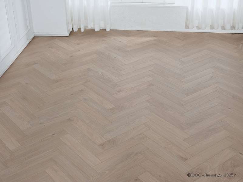 Это полностью готовое покрытие. Оно не требует финишной отделки – верхний слой с "Елочкой" рисунком прекрасно вписывается в любое оформление комнаты и хорошо смотрится со всеми настенными и потолочными материалами. Толщина доски составляет 12мм, что позволяет сделать пол прочным, устойчивым к прогибу. Ламинированная панель выдерживает большой вес мебели, на ней не остается следов от ножек и царапин. Материал хорошо держит тепло внутри помещения, не пропускает внутрь холод.