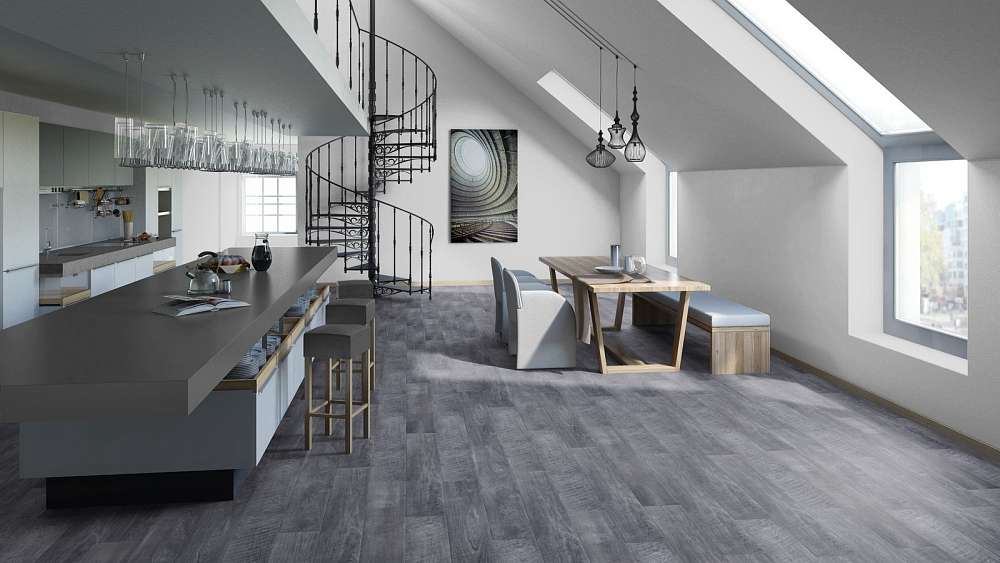 Это полностью готовое покрытие. Оно не требует финишной отделки – верхний слой с "Лофт" рисунком прекрасно вписывается в любое оформление комнаты и хорошо смотрится со всеми настенными и потолочными материалами. Толщина доски составляет 8мм, что позволяет сделать пол прочным, устойчивым к прогибу. Ламинированная панель выдерживает большой вес мебели, на ней не остается следов от ножек и царапин. Материал хорошо держит тепло внутри помещения, не пропускает внутрь холод.