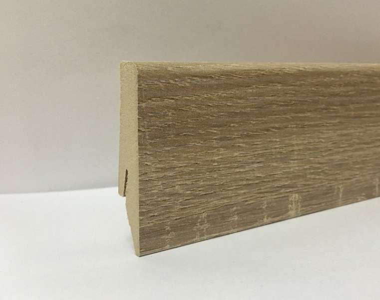 Высота плашек – 58мм. Она позволяет заводить под плинтус стеновые панели и полностью закрывать технические зазоры между стеной и покрытием пола. Можно не выравнивать стены и пол в месте их стыка.