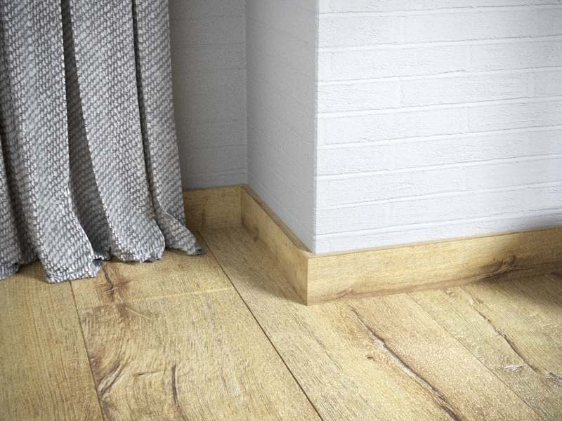 Высота плашек – 60мм. Она позволяет заводить под плинтус стеновые панели и полностью закрывать технические зазоры между стеной и покрытием пола. Можно не выравнивать стены и пол в месте их стыка.