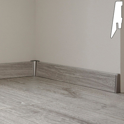 Высота плашек – 58мм. Она позволяет заводить под плинтус стеновые панели и полностью закрывать технические зазоры между стеной и покрытием пола. Можно не выравнивать стены и пол в месте их стыка.